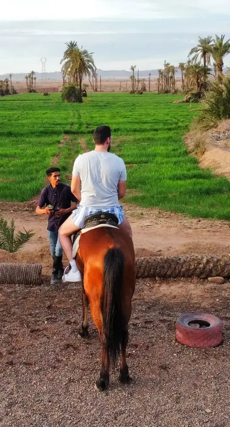 Embark on a guided 1 hour horse ride through the Palmeraie’s lush palm groves and desert oases.